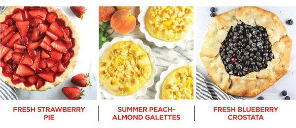 Pies, galettes, and crostatas, oh my! Celebrate summer fruit with a beautiful baked delight. IN THIS ISSUE, we acquaint you with some of our very favorite fresh fruit desserts. We include three delicious recipes that provide a sweet finish to any summer occasion.